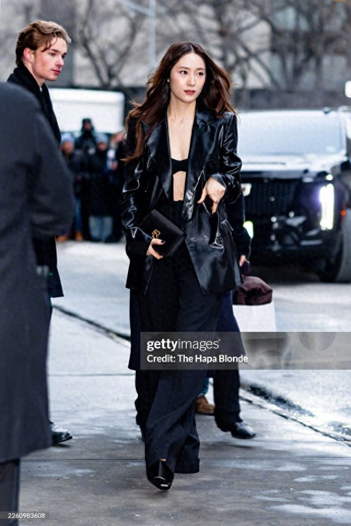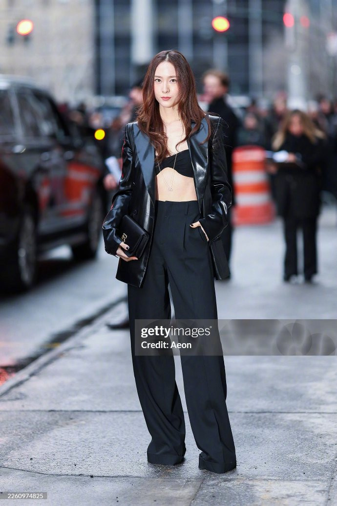 郑秀晶身材高挑,骨相优越,让她驾驭中性气质十足的时尚单品也能很出彩!比如这次她选择了亮面的黑色皮西装外套,中长款和一粒扣设计让这款皮衣驾驭起来非常考验身材!但郑秀晶内搭一件黑色简约内衣,意外穿出时尚大片的感觉!